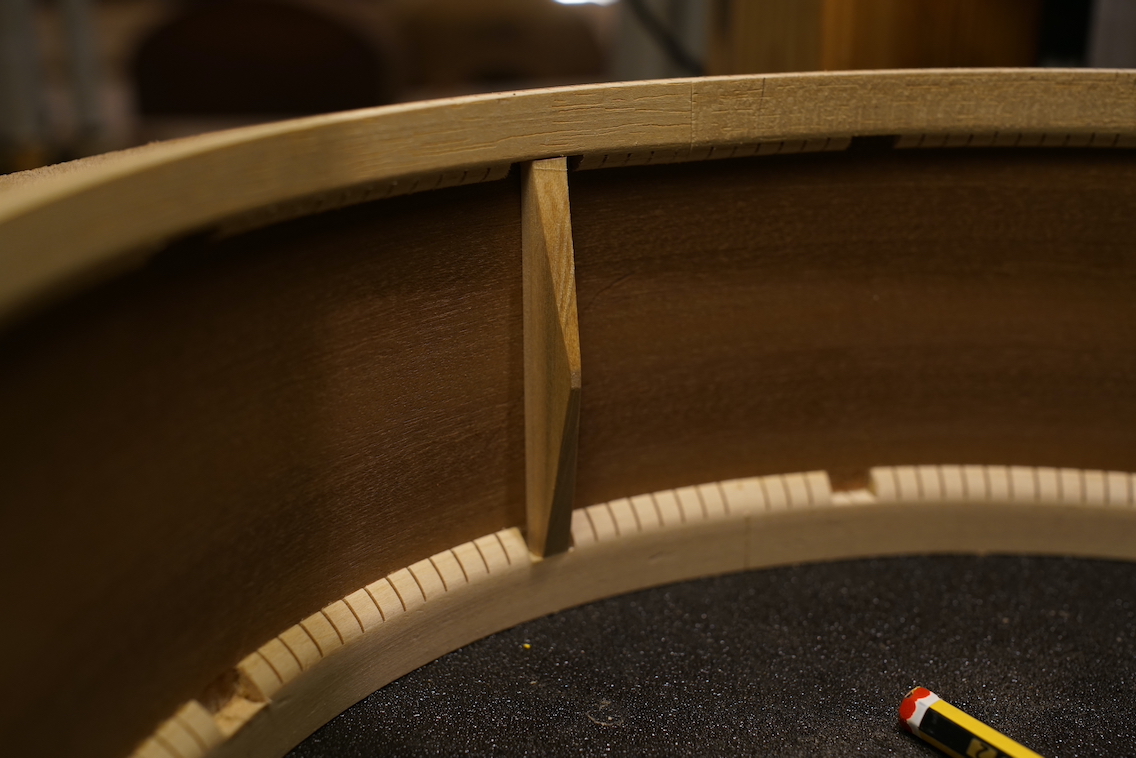 Après avoir fait les encoches dans les contre éclisse on peut venir placer et coller les renforts.
