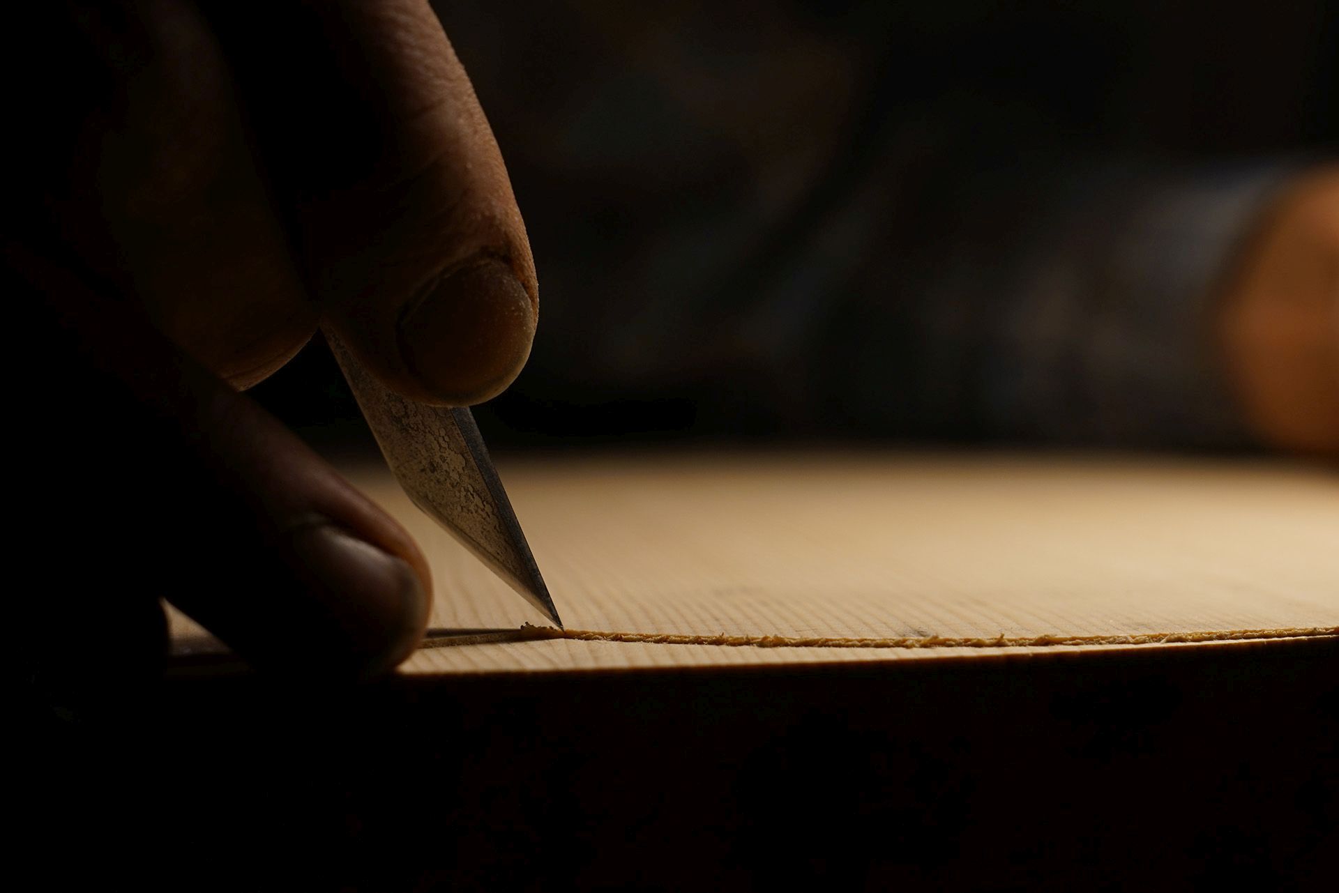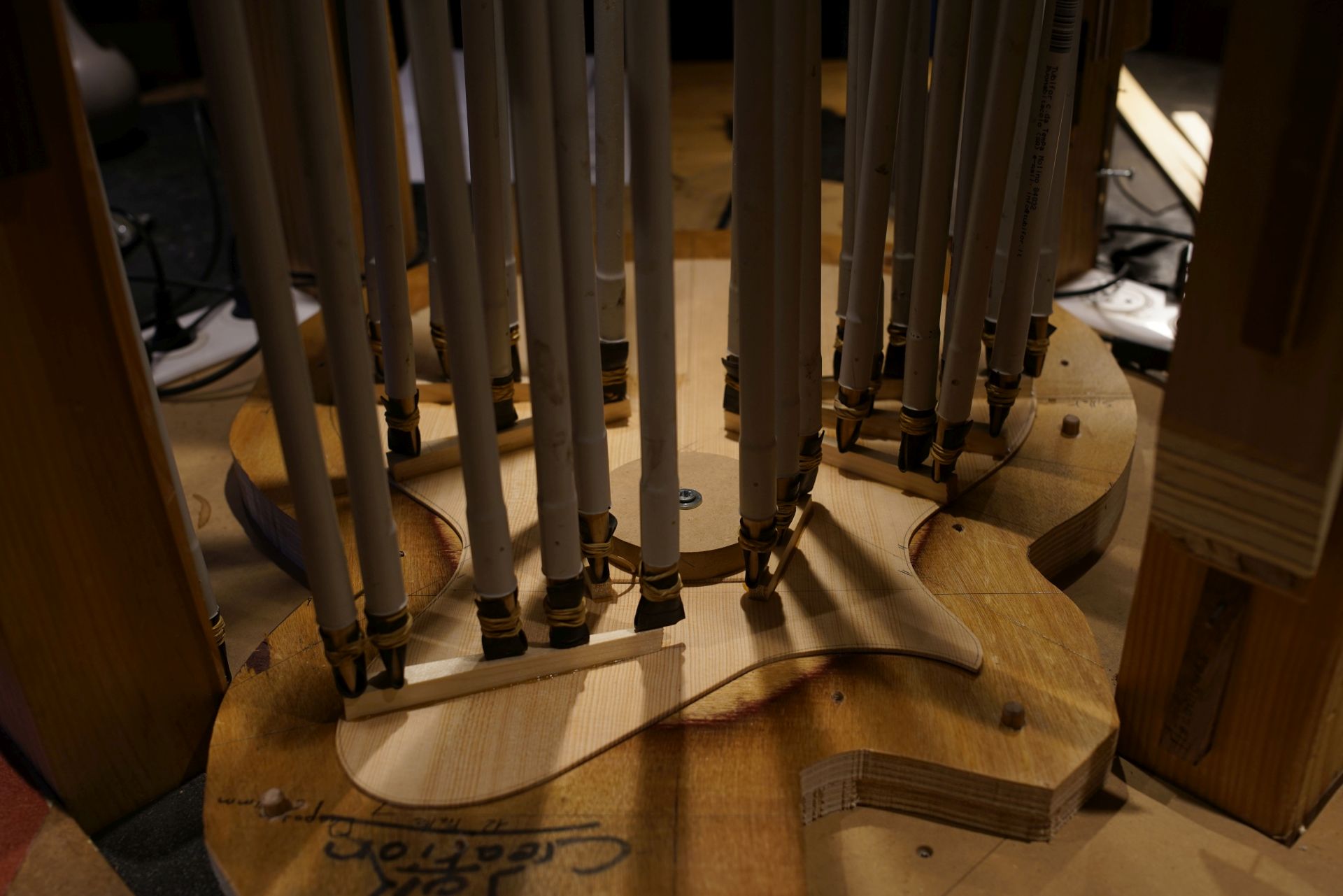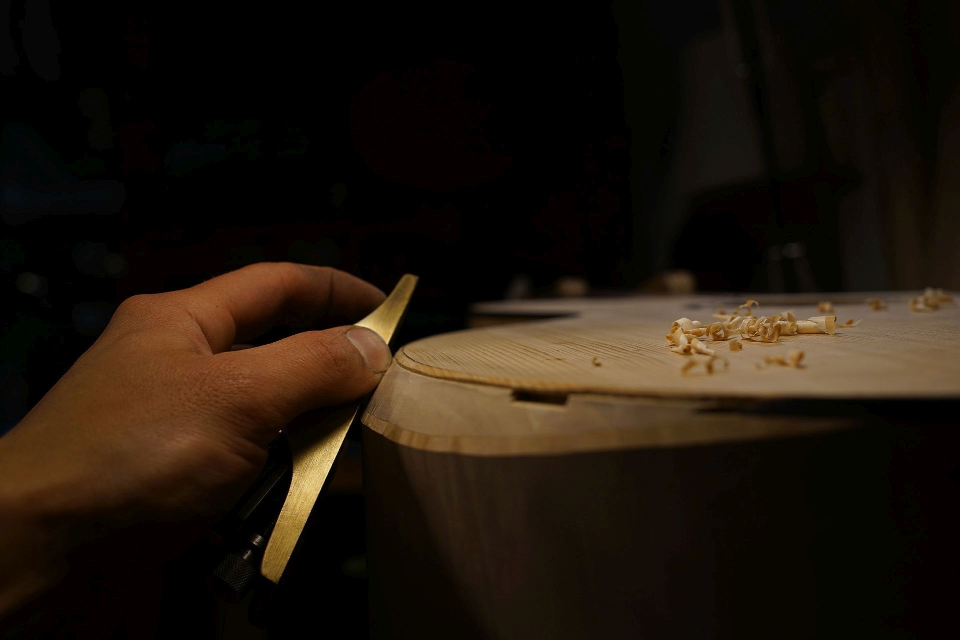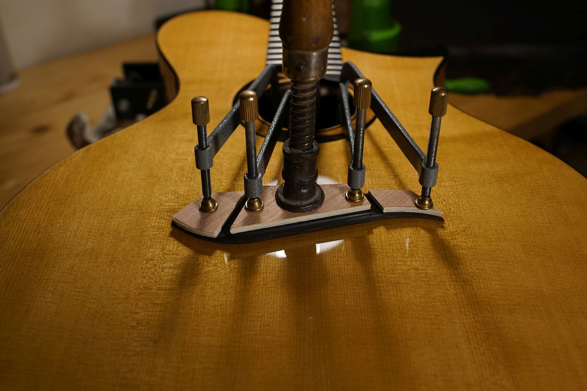 Jointage et collage de la table en épicéa sitka. Sobre à première vue mais les rayons médullaires sont juste dingues !