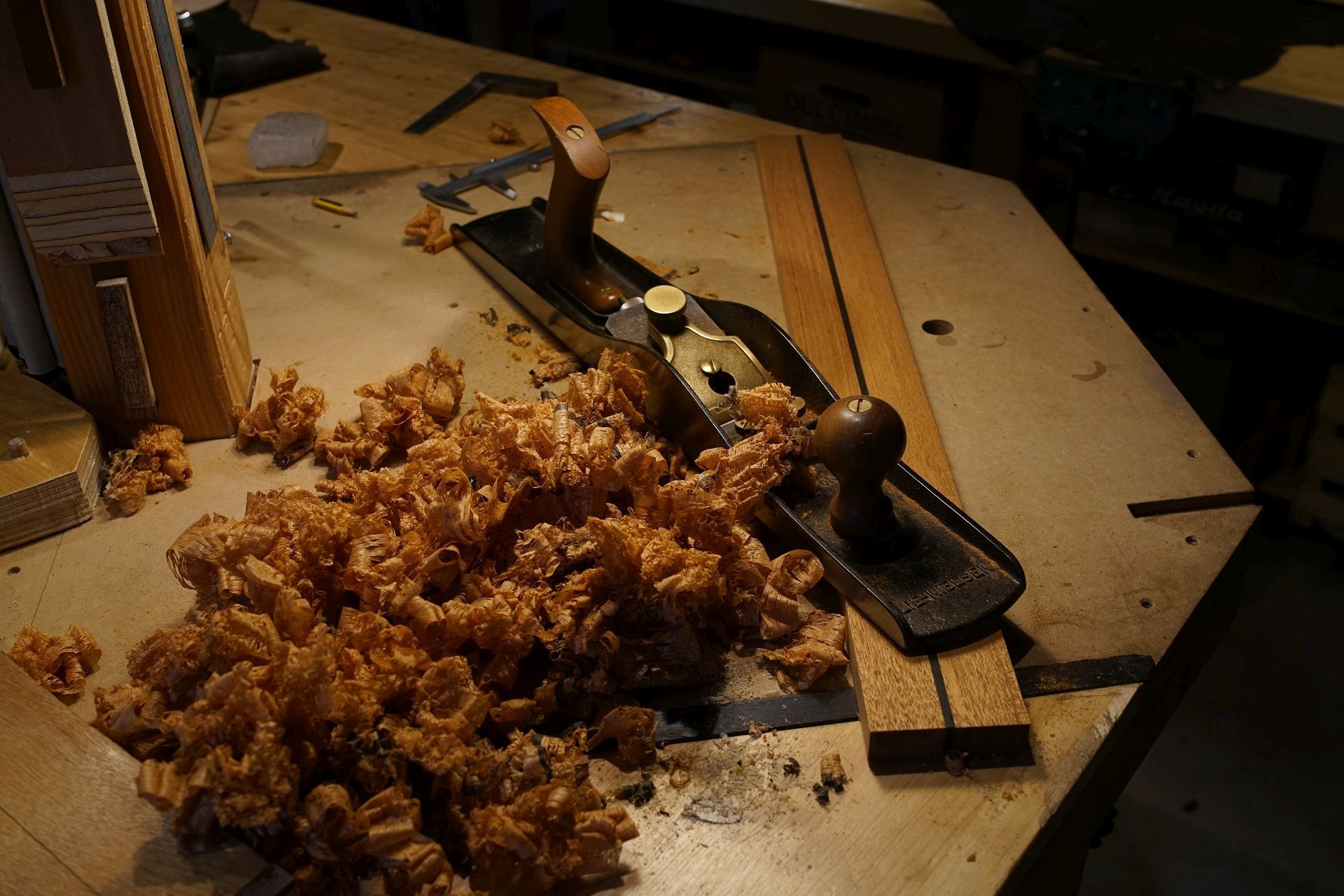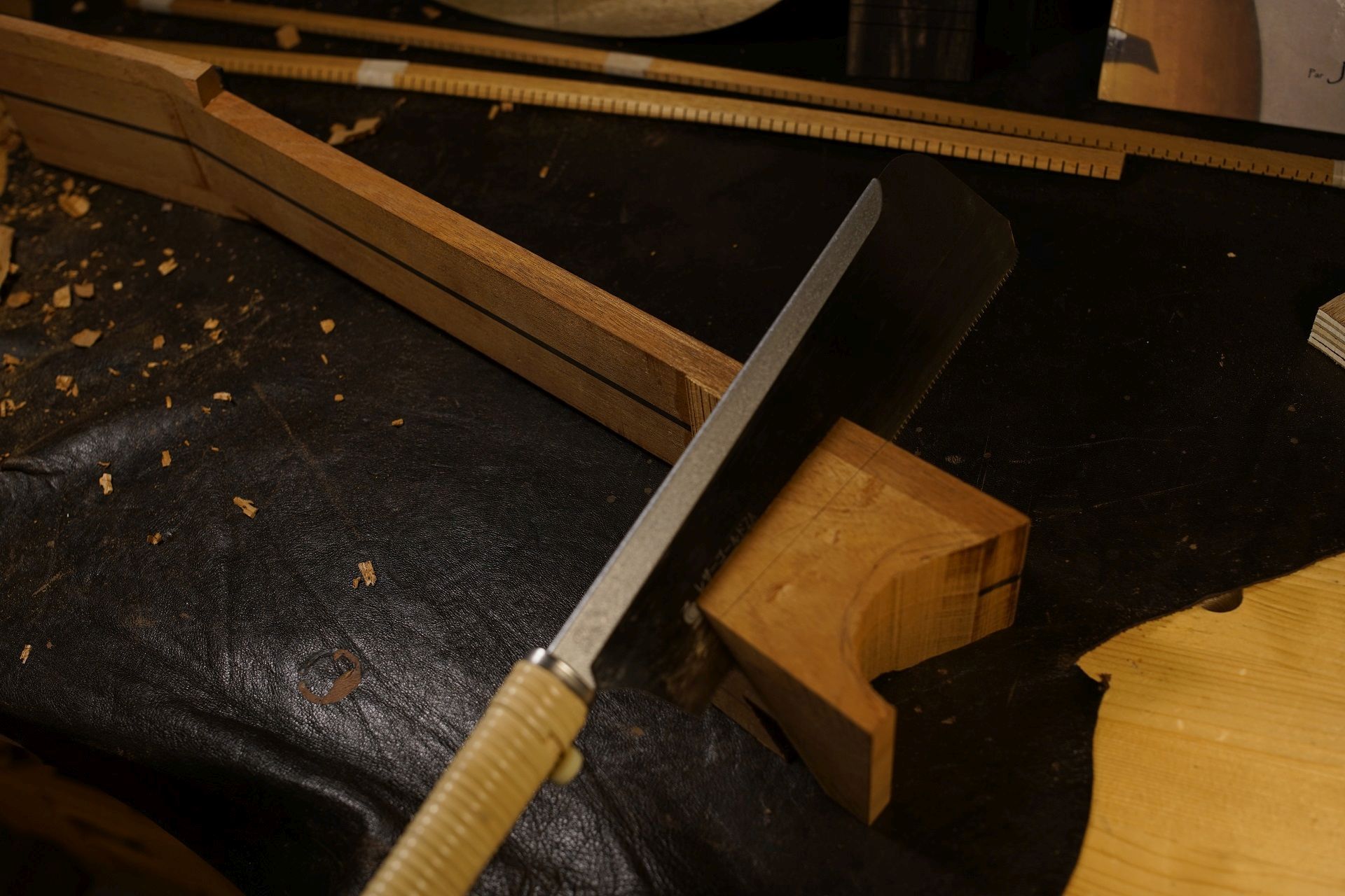 Préparation du repose bras. Une pièce en ébène viendra par dessus pour la cohérence d'ensemble.