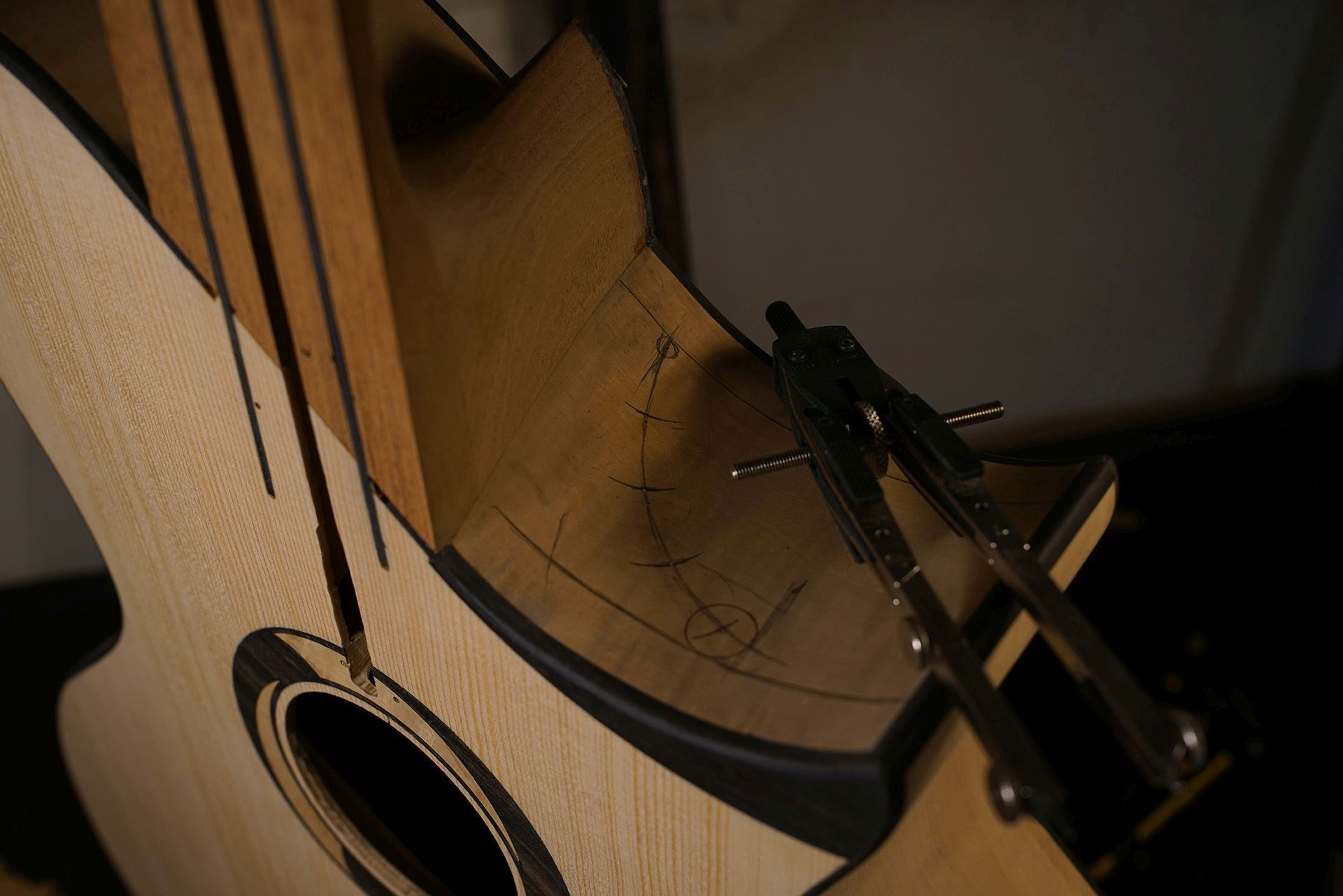 Et aller ! Nouveau modèle en départ pour la fabrication : une folk de 7 cordes pleine de promesses !