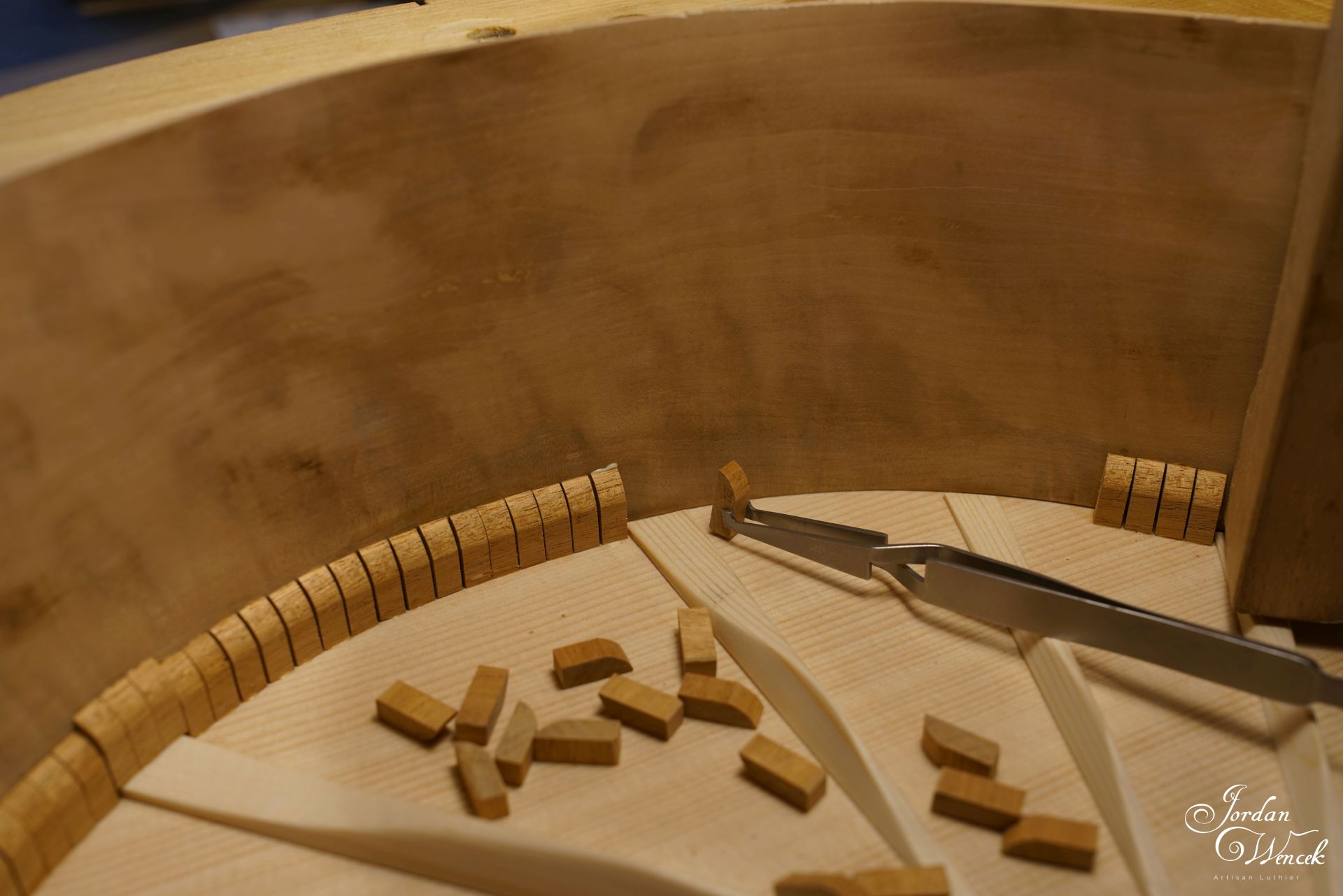 Incrustations ! En ébène s'il vous plait, pour le rappel des essences. Travail qui doit se finir au scalpel ...