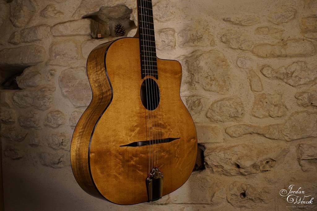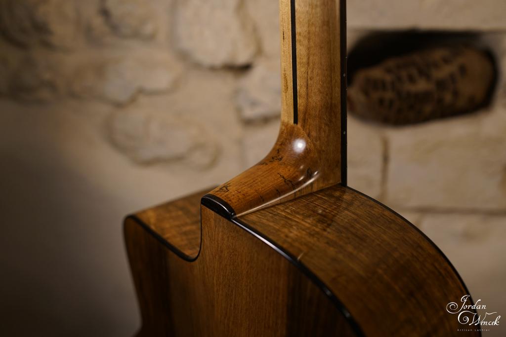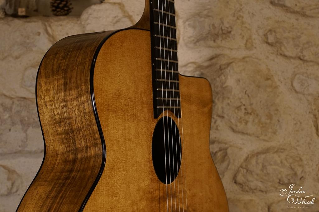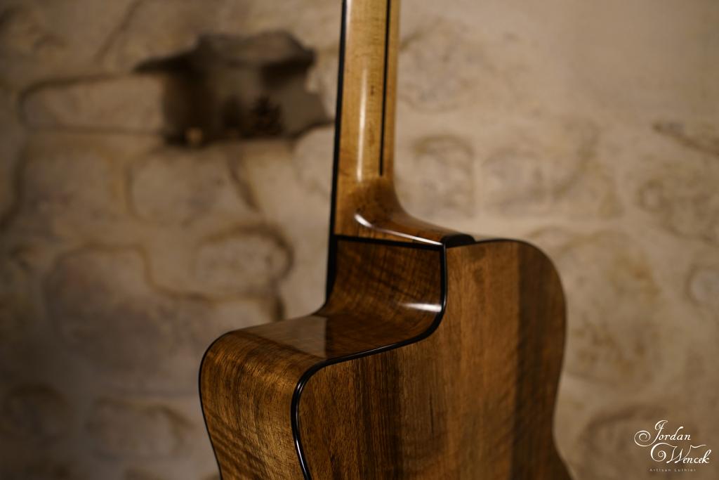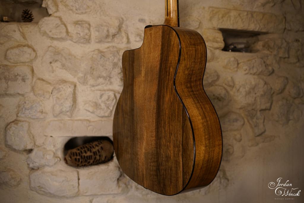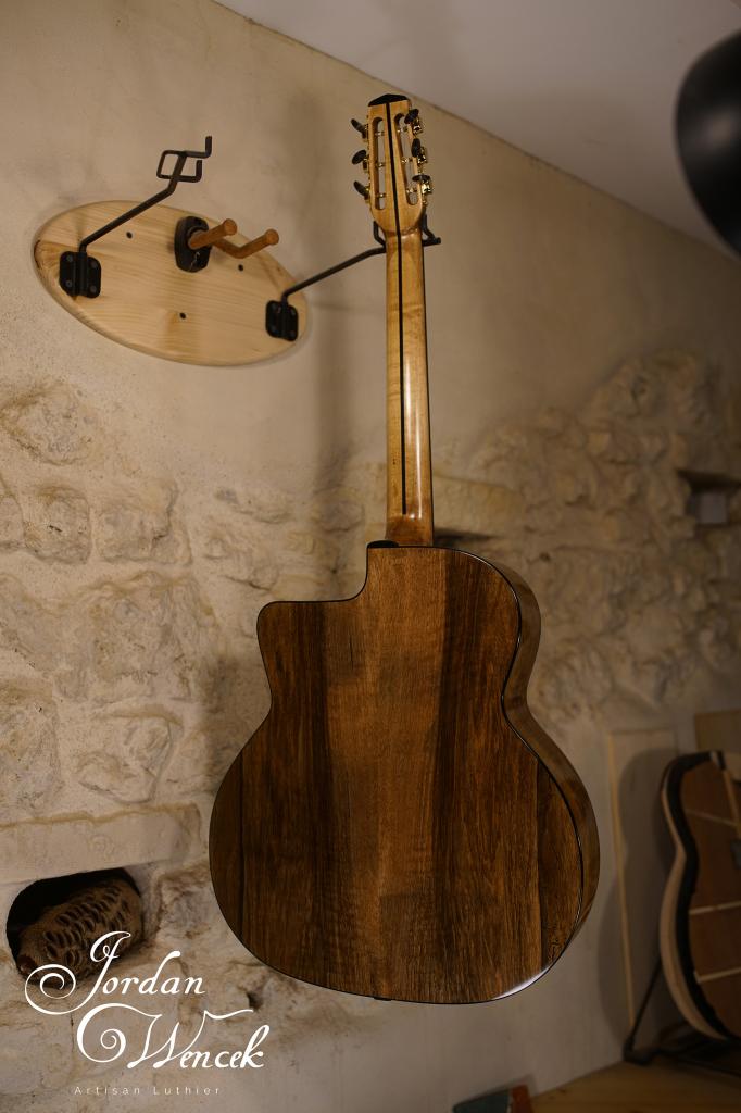 Bel équilibre entre le noyer et la table en épicéa. Une guitare avec une forte présence et des note bien définie même à fort volume ! Un son clair à l'attaque et chaleureux si on lui demande de faire un peu sa timide ...